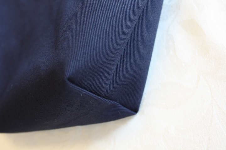切替生地の上中央にイニシャルを1つ刺繍します。 |